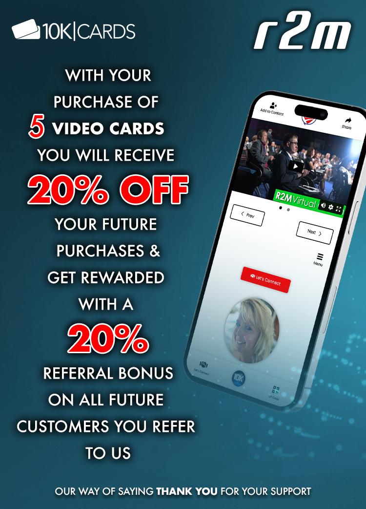 WITH YOUR PURCHASE OF FIVE (5) VIDEO CARDS, YOU WILL RECEIVE 20% OFF YOUR FUTURE PURCHASES & GET REWARDED WITH A 20% REFERRAL BONUS ON ALL FUTURE CUSTOMERS YOU REFER TO US.
